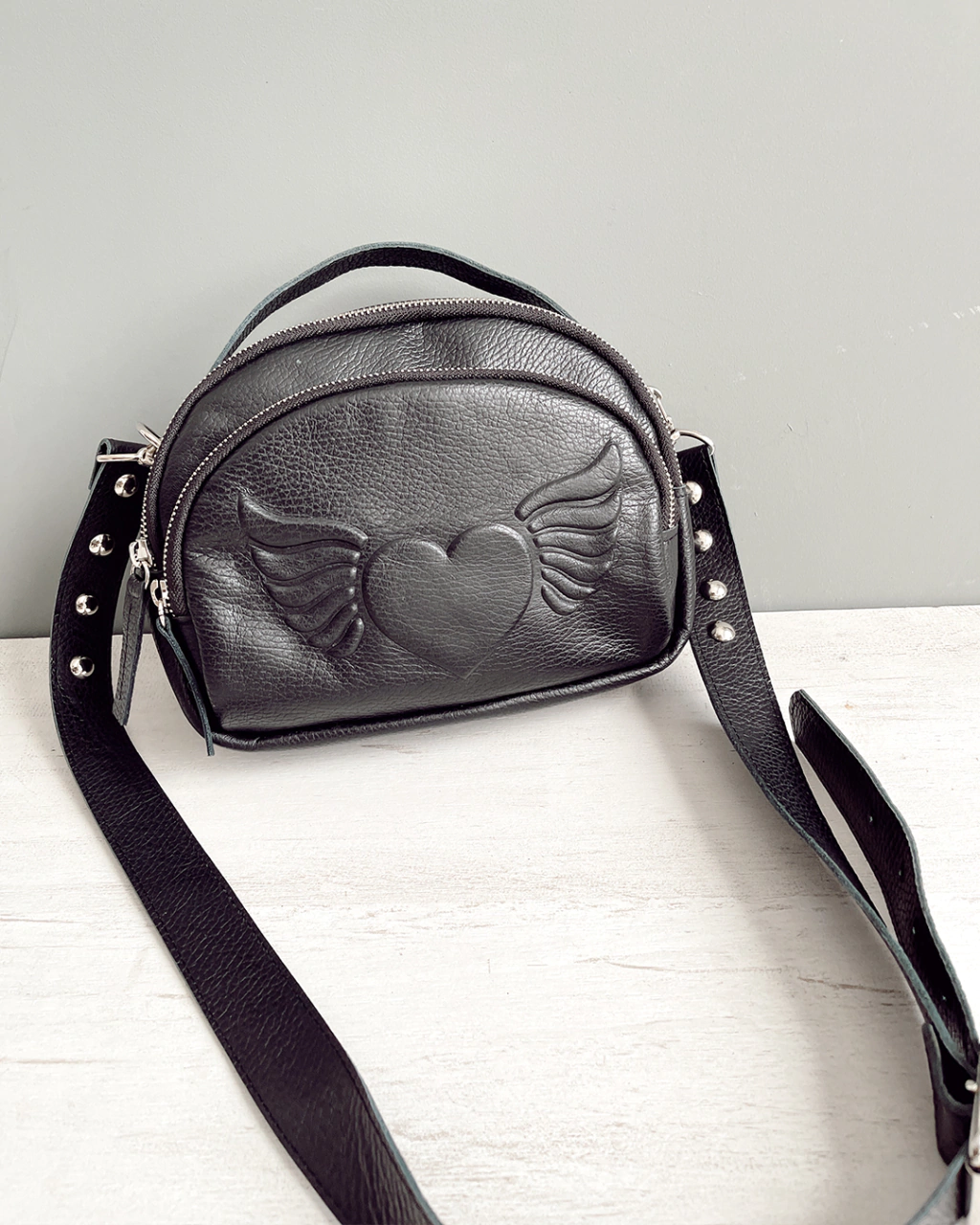 Cartera de cuero 100% natural vacuno, fabricada en Argentina.